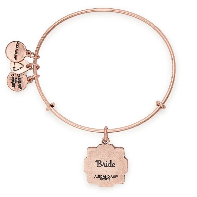 Few things will top the joy of being a bride-to-be and the anticipation of marrying the love of your life. Help her to live in the moment of this exciting time with the Bride Charm Bangle. Created in RAFAELIAN ROSE GOLD Finish, this expandable bracelet features a diamond-inspired design with the phrase ‘Happily ever after’ accented with Swarovski crystals. The word ‘Bride’ is etched on the back. Give this meaningful token to any future Mrs. as she prepares for her special day.