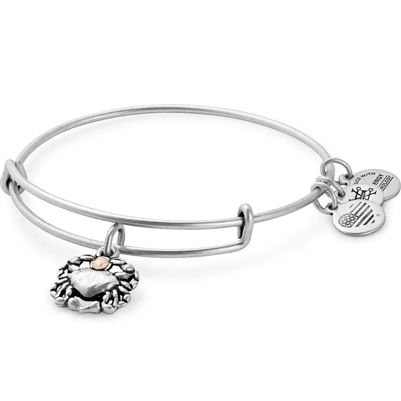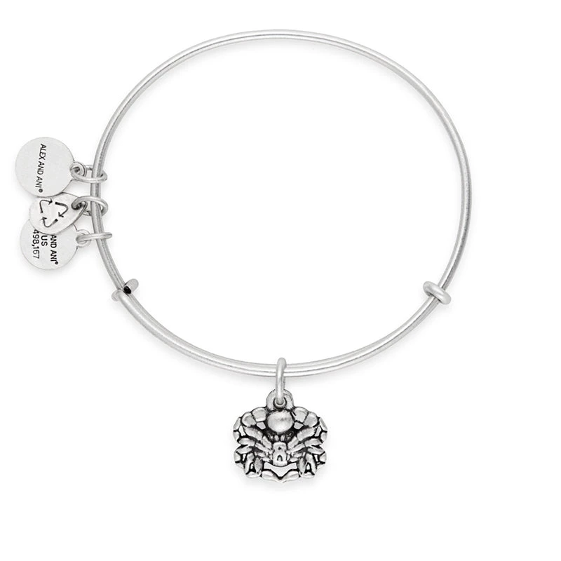 A crab makes its way on land sideways, never taking a direct route. This roundabout way of travel makes for an interesting journey. This Crab Charm Bangle bracelet in RAFAELIAN SILVER will remind you that not all paths in life are direct, and you can reach your intended destination in unorthodox ways. Like the Crab, you must trust your instincts and sometimes reinvent yourself in order to find your true path.
