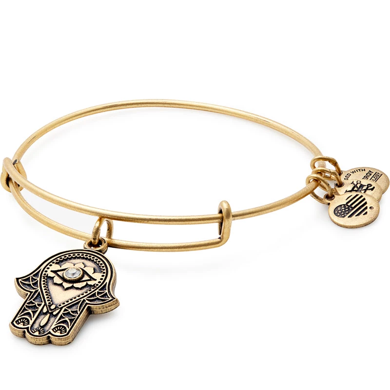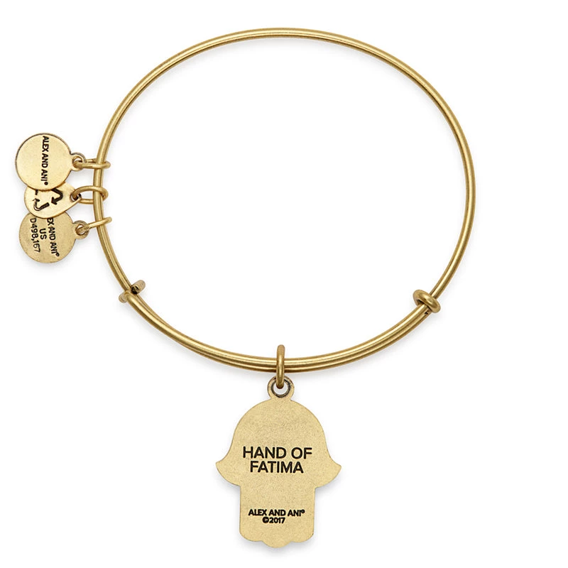 The Hand of Fatima is an ancient talisman that symbolizes feminine power. Originating from the Hebrew word hamesh, literally meaning five, the hand is worn as a defense against negative energy, deflecting the gaze of the evil eye away from the wearer. Believed to channel the forces of good, the Hand of Fatima Charm Bangle bracelet in Rafaelian Gold promotes healing and fosters miracles.