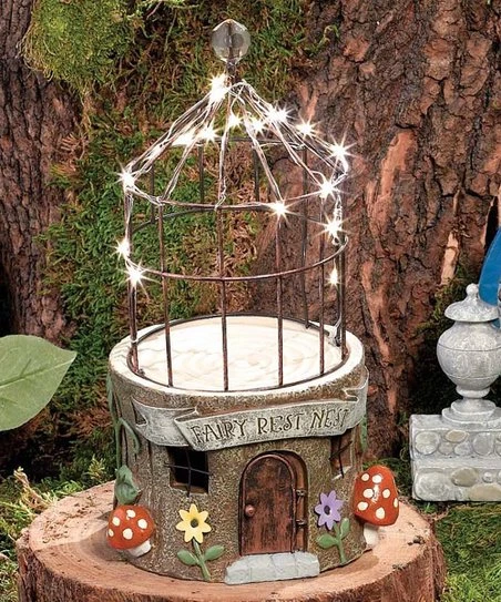 Give your fairies a place to rest while adding a soft and magical glow to your garden with this lighted figurine.