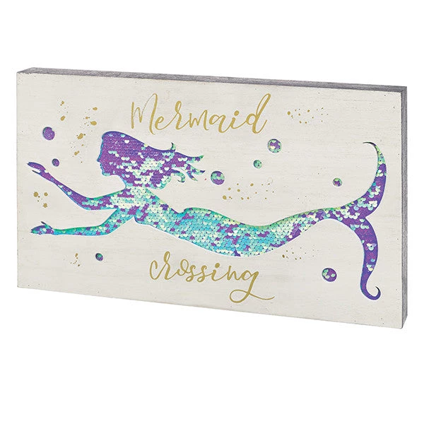 A beautiful Mermaid Crossing Plaque by Grasslands Road with Sequin.