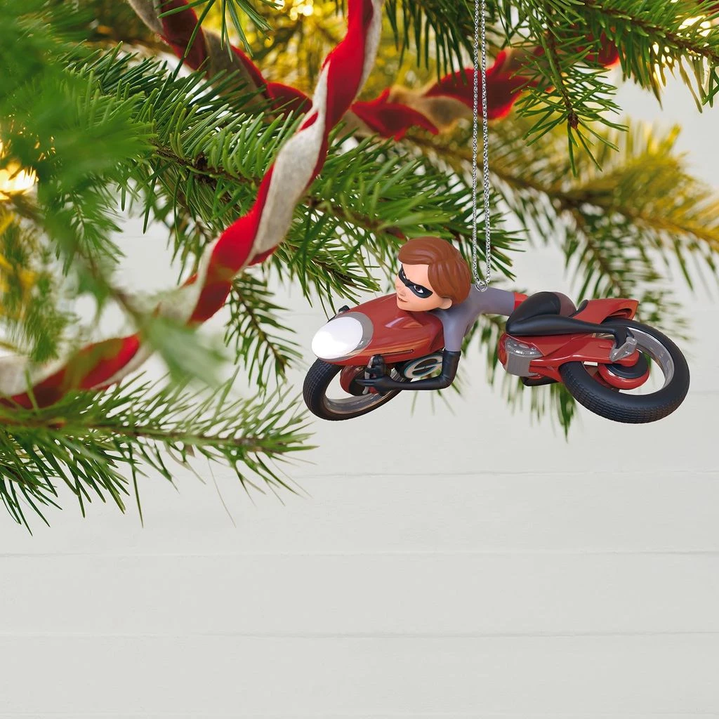 The Parr family of Super Heroes is back to save the world again. Capture the excitement of the much-anticipated Disney/Pixar sequel “Incredibles 2” with this action-packed Christmas tree ornament. Fans will love getting their hands on this cool design that features Elastigirl in full stretch-mode atop her motorcycle.