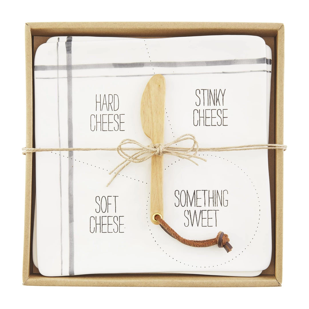 - 2-piece set. Hand-painted ceramic plate features plating design diagram/guide. Comes with wood spreader.