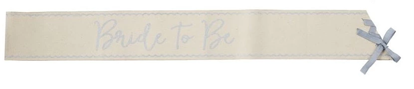 Canvas bridal sash features printed sentiment and grosgrain ribbon tie.