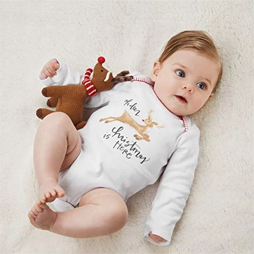 - 2-piece set. Printed long sleeve cotton interlock crawler with inner leg snap closure. Arrives with sweater knit rattle.