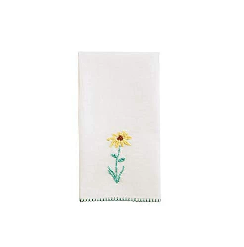 - Daisy hand towel features stitched hem and hand-knotted French knot botanical with embroidery and jute twine detail.