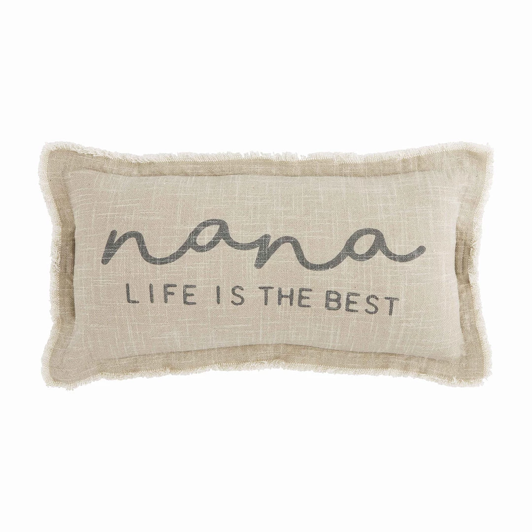- Cotton slub lumbar pillow with frayed flange. Zipper closure.
