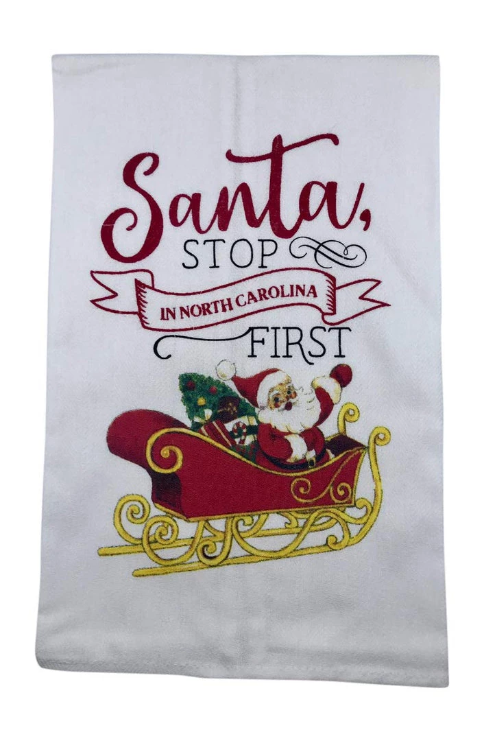 Absorbent cotton hand towel features printed holiday artwork with state specific sentiment