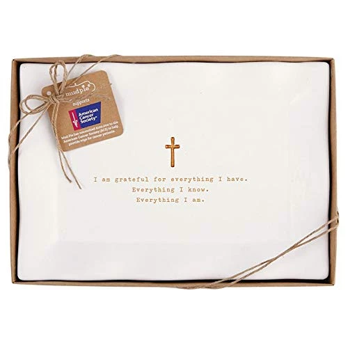 - I am Grateful tray features debossed gold foiled sentiment with coordinating cross icon. Arrives gift boxed.