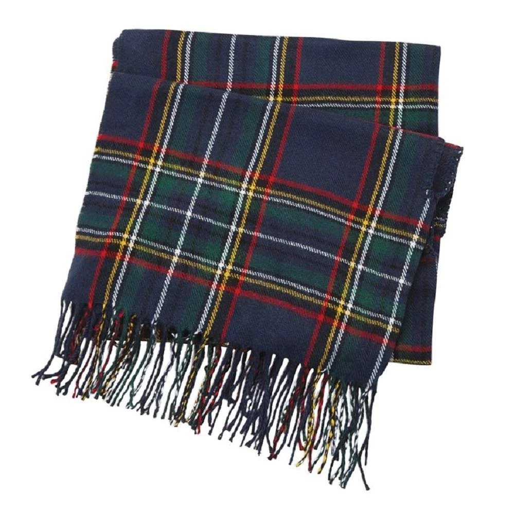 - woven tartan plaid wrap features fringe trim and arm hole detail