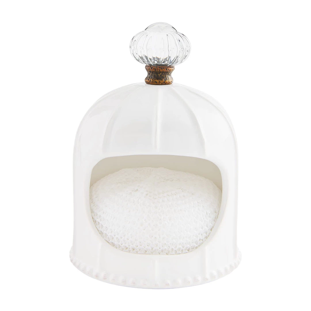 - 2-piece set. Beaded ceramic sponge caddy features glass door knob finial. Comes with sponge.