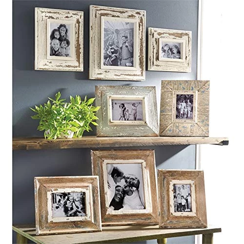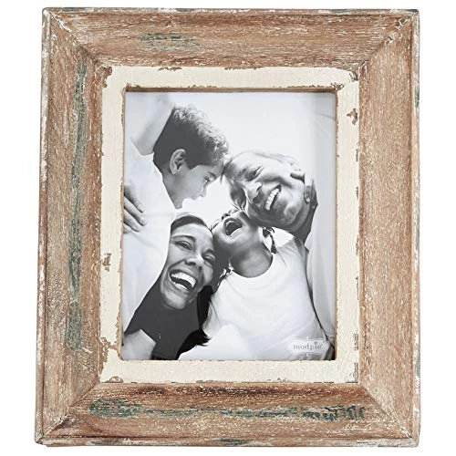 Large natural wood picture frame features weathered white-wash finish surrounding 4″ x 6″ photo opening. Stands with back easel or hangs with sawtooth hardware.