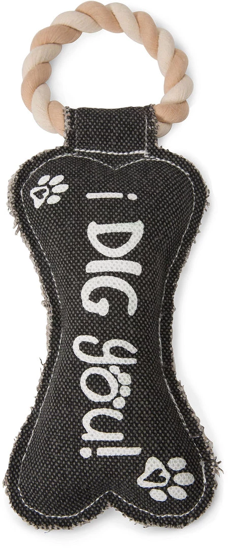- IN-HOUSE DESIGN: “I Dig You” text and accompanying paw print icon are both printed onto the front of the toy.