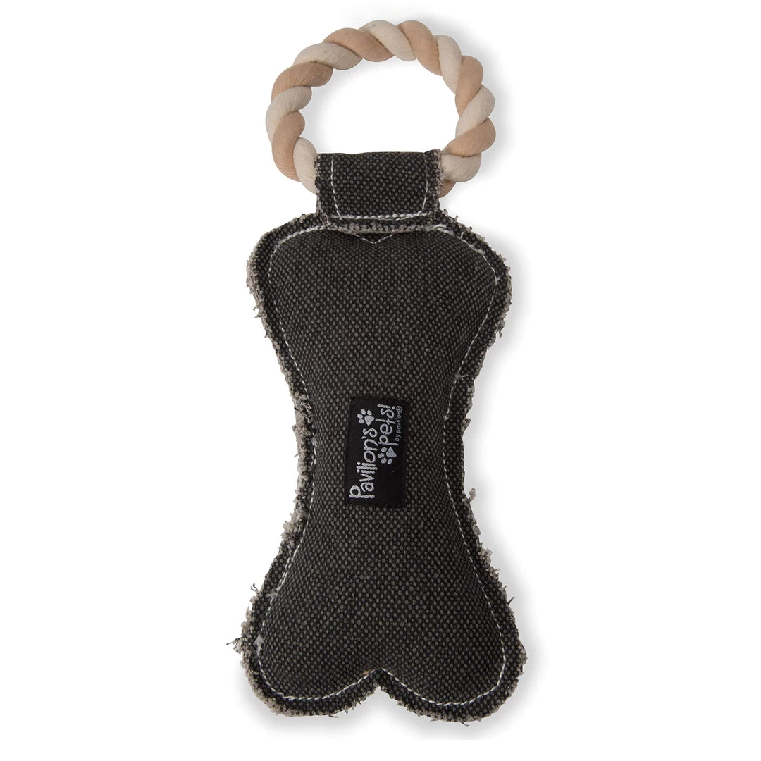 - PREMIUM QUALITY: Bone-shaped dog toy with attached rope, packaged in a plastic polybag, is made from a high-quality cotton and polyester blend with an inner made from poly-fill and a squeaker.