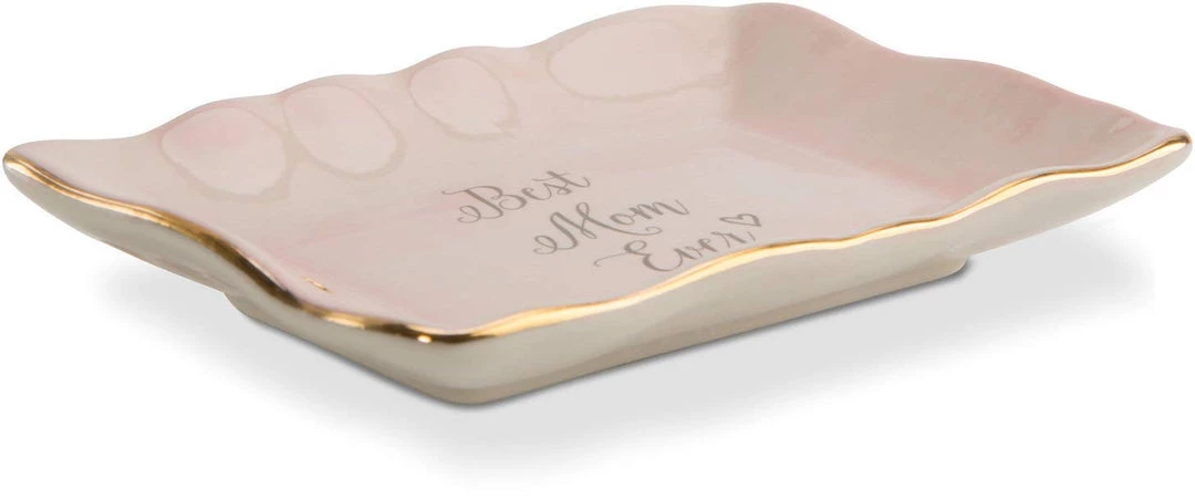- IN-HOUSE DESIGN: “Best Mom Ever” text is printed on the top of the dish and is accompanied by five laser-cut holes.