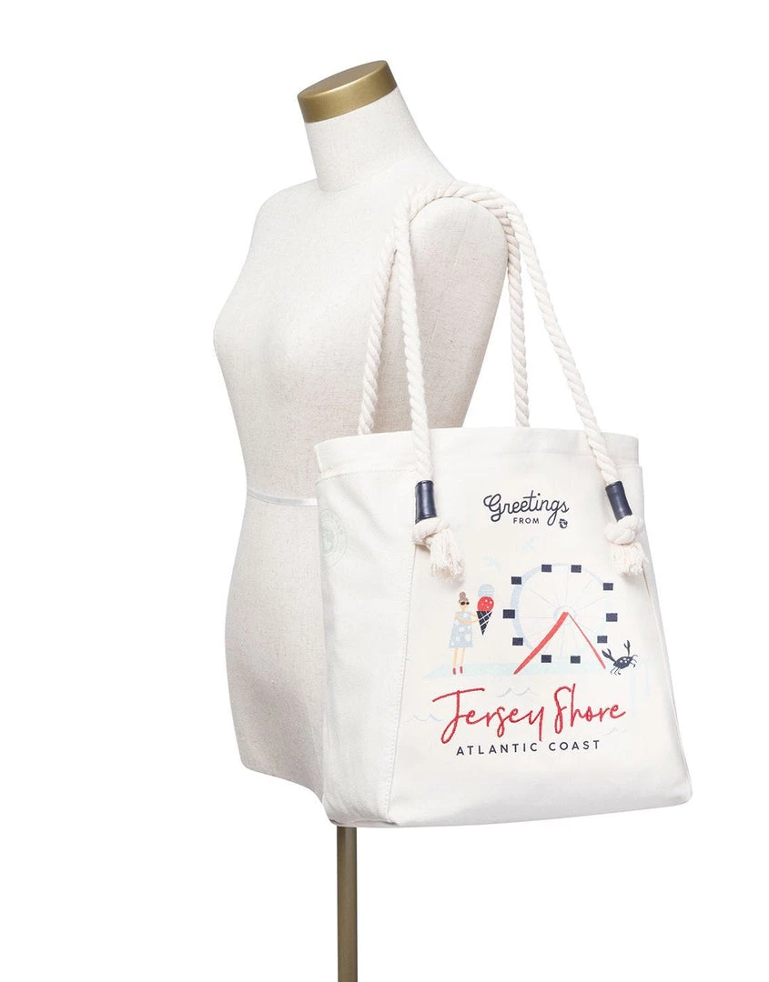 To the local market or to the resort pool, our Greetings From Canvas Totes are made for you! With sturdy rope shoulder straps and two exterior side pocket panels, this tote is ready to go anywhere with you