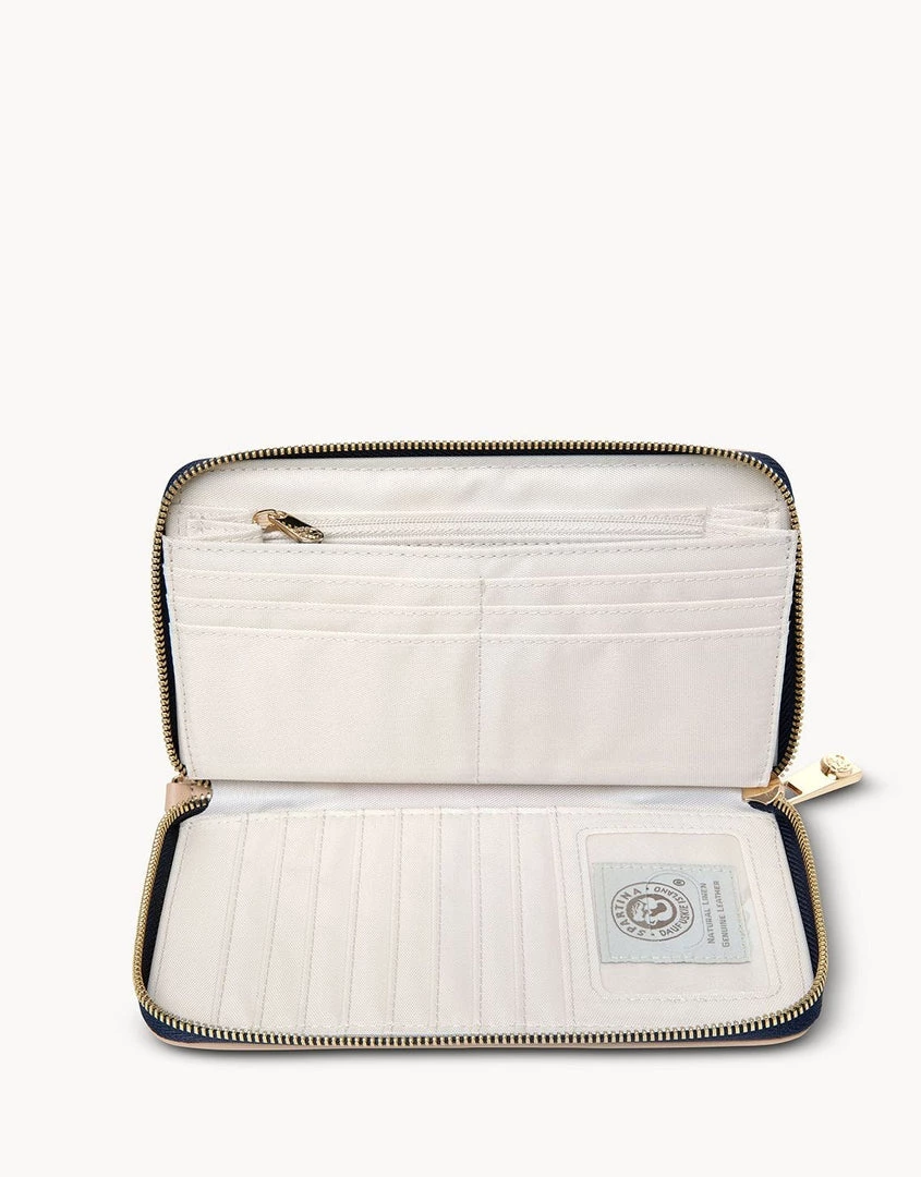 It’s the best of the best! We added our gleaming Yacht Club medallions to our popular 449 Wallet to convey a symbolic message about your personality: strong, smart, stable, free and happy. Same great features, like full-zip security, wallet or wristlet functionality, room for your phone, plus protective RFID lining. And now the exterior showcases our Yacht Club medallion and a bonus zipper pocket. Inside? 14 card slots, 2 bill slots, ID window and a zippered pouch for coins, cash or phone