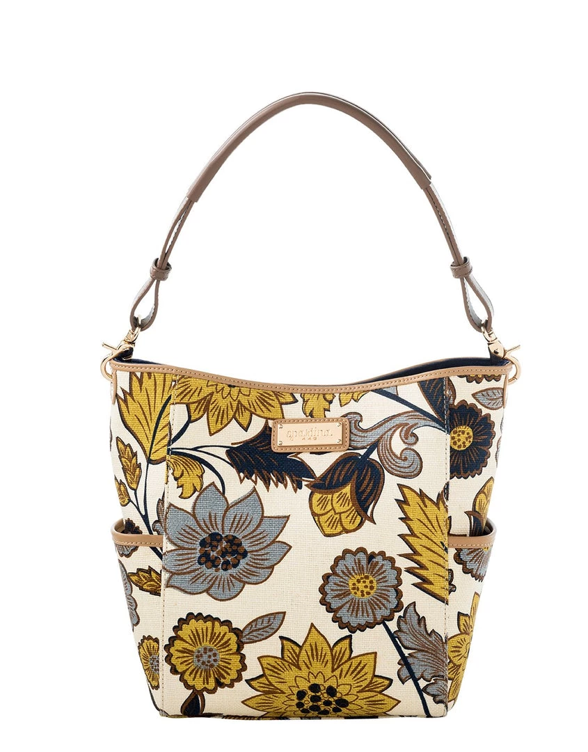 A beautiful hybrid of upscale and casual, our Signature Hobo has perfected the sophisticated slouch. Featuring a convenient, magnetic, snap closure and spacious exterior slip pockets, this bag carries comfortably with padded shoulder strap and stands proudly on golden mermaid feet.