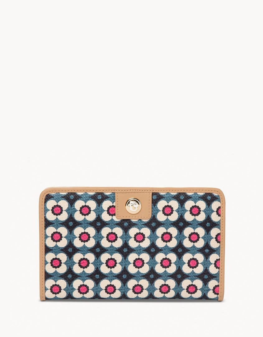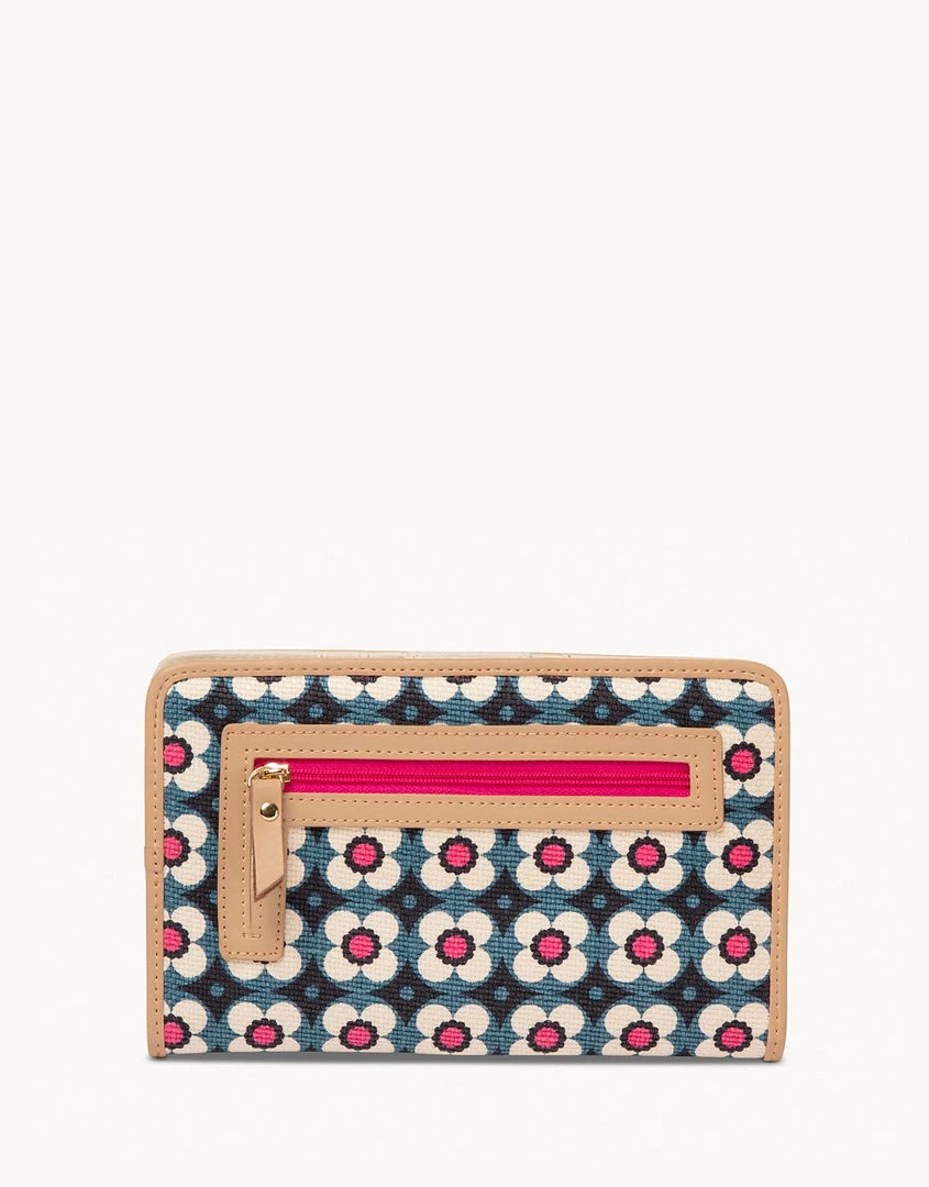 - 2 bill slots with ID window Interior zip pocket and pen tab